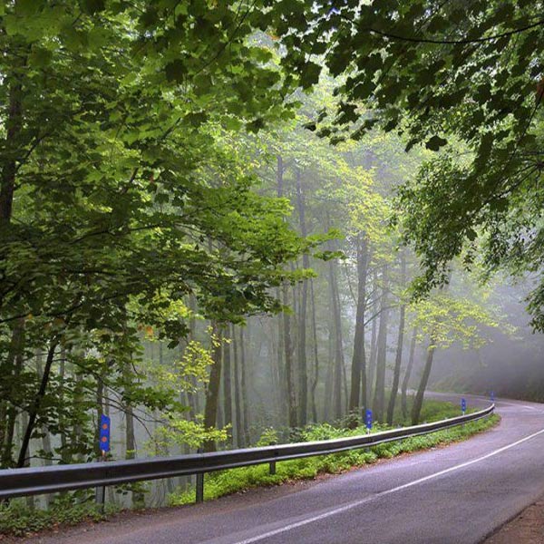 • قد سيارة على طريق تشالوس لرحلة لا تُنسى عبر المناظر الطبيعية الخضراء.