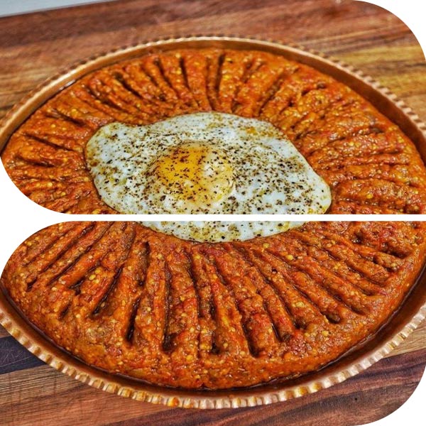 طبق من الباذنجان المدخن والطماطم يُقدّم مع الأرز أو الخبز