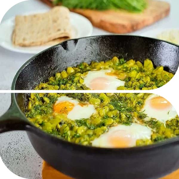 حساء لذيذ مصنوع من الفول الأخضر والشبت والبيض