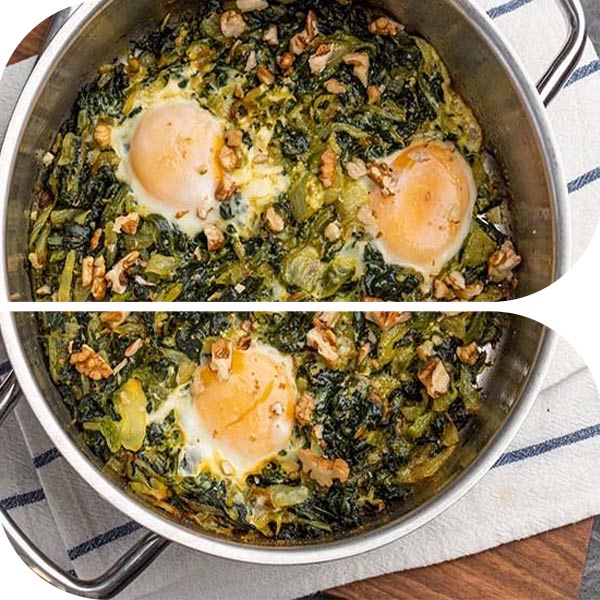 طبق من السبانخ والبيض، مثالي للإفطار أو الوجبات الخفيفة